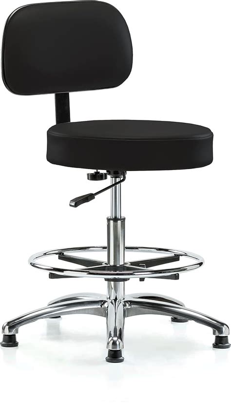 lowes Perch Chrome Walter Exam Stool with Backrest Support, Stationary Caps, Workbench Height, Black Vinyl
